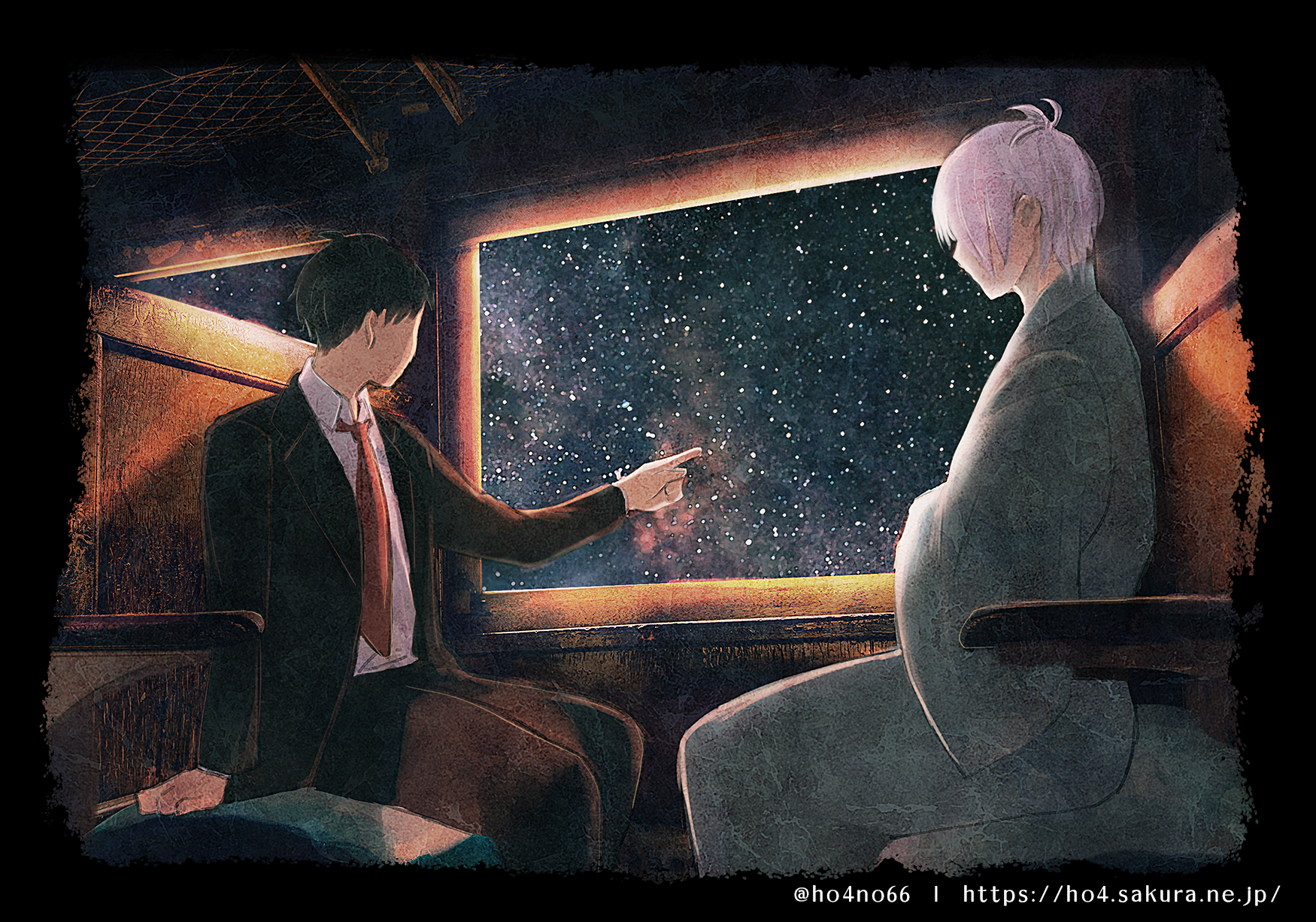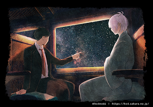 あの哭倉村へ向かうための夜行列車──ではない、銀河を走る汽車のなかに。